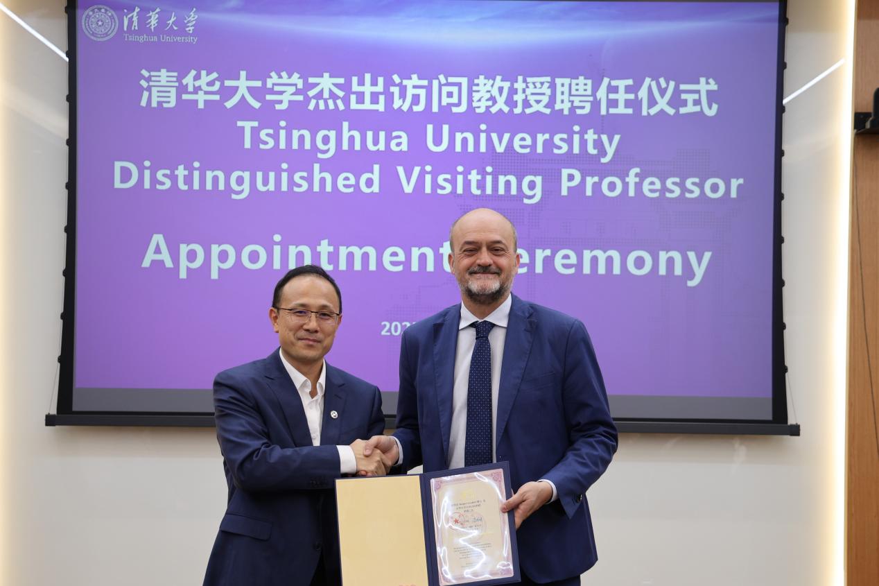 党委书记郑泽东为Sergio Cavalieri颁发了清华大学杰出访问教授聘任证书,并表示希望未来进一步加强双方的合作交流。