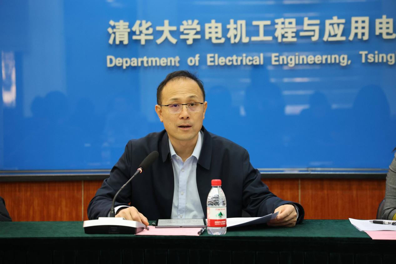 党委副书记吴文传主持。教师工作部副部长、教师发展中心主任郑晓笛,系主任康重庆、党委书记郑泽东,青年教师顾问导师代表,2022年及之后入职的青年教师代表共同参会。行业及国际导师代表,美国国家标准与技术研究院Stephan Schlamminger博士、北京电力交易中心总经理谢开、东方电气集团东方电机有限公司资深专家梁智明等线上参会并发言。