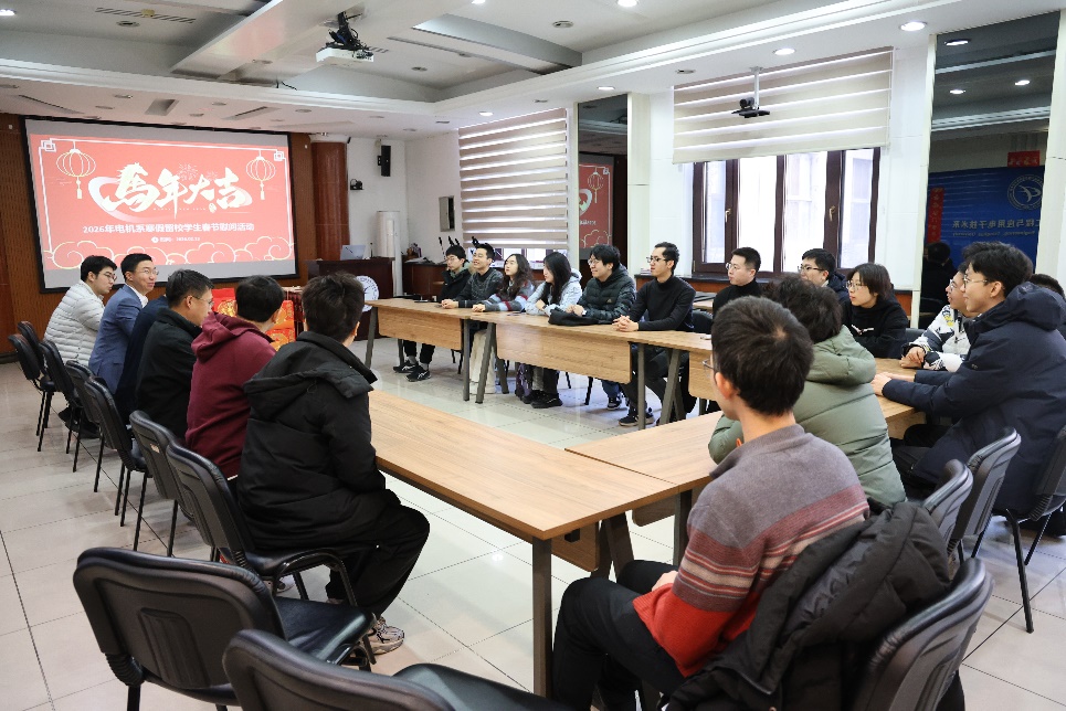 在西主楼3区102会议室举行寒假留校学生春节慰问活动。系党委书记郑泽东、系副主任陆超、系党委副书记余占清、系党委研工组组长钟海旺等老师出席,与留校学生共迎新春。