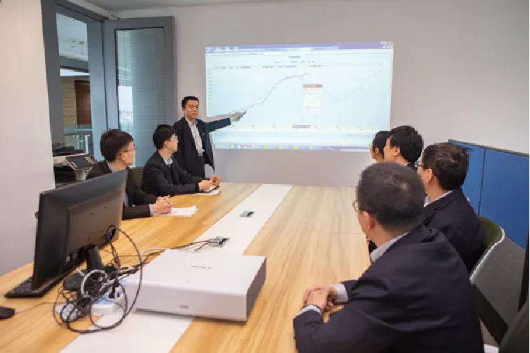 夏德明(中)与调度中心同事们研究新能源消纳方案